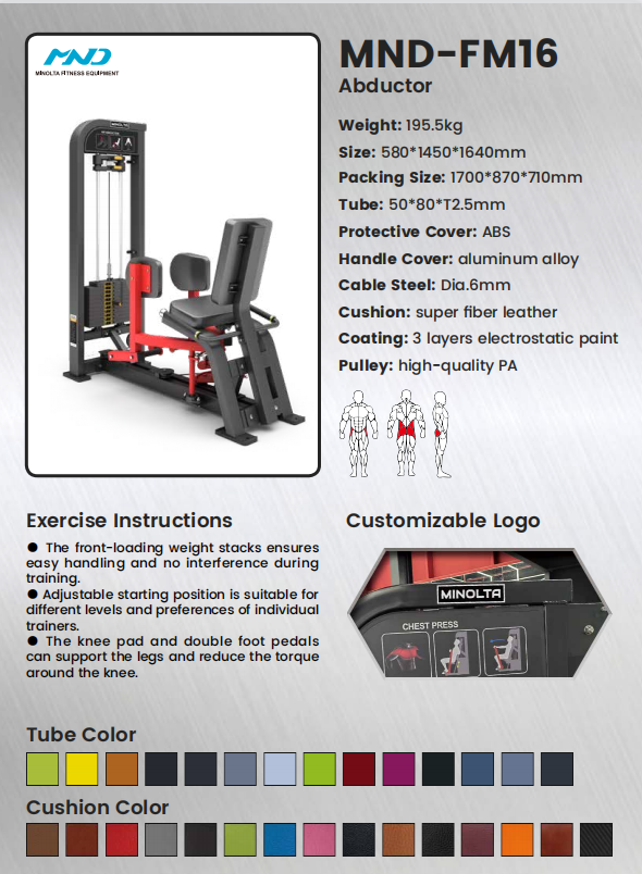 Define tus glúteos y caderas exteriores. El MND-FM16 aísla los músculos abductores de la cadera, principalmente el glúteo medio, crucial para crear glúteos más redondos, mejorar la estabilidad de la cadera y mejorar la estética y la función de la parte inferior del cuerpo.