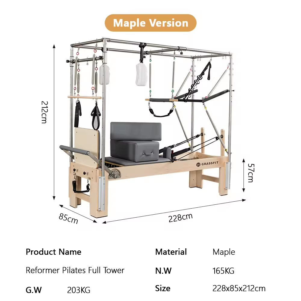 El MND-W25 resuelve las limitaciones de espacio sin comprometer la funcionalidad al integrar tres aparatos de Pilates en una unidad cohesiva. El diseño inteligente mantiene la versatilidad total del ejercicio al tiempo que reduce el espacio que ocupa el equipo en aproximadamente un 40 % en comparación con las piezas separadas.
