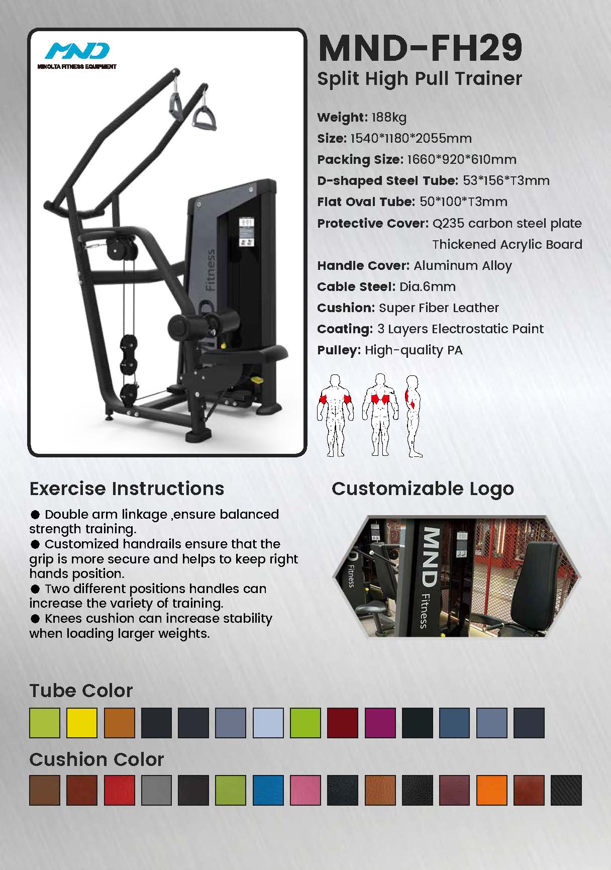 El entrenador de tracción alta dividido FH29 aborda los desequilibrios musculares permitiendo que cada brazo trabaje de forma independiente. Esta modalidad de entrenamiento avanzada es crucial para desarrollar fuerza simétrica en los músculos a menudo complejos de la parte superior de la espalda y los hombros, mejorando tanto la estética como el rendimiento funcional.